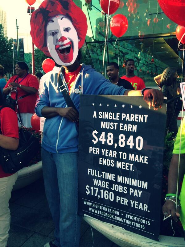 Today Ronald McDonald says “hold the burgers hold the fries make worker wages supersize!” #strikefor15 #829strike twitter.com/fightfor15/stat… -