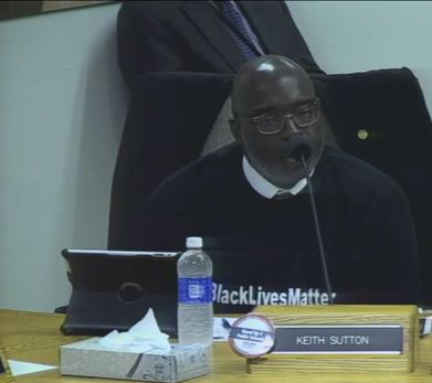 At the most recent meeting, board member Keith Sutton wore a t-shirt that said “#BlackLivesMatter” on it and launched into a long speech about how he was almost detained once at a past school board meeting so he knows what people like Eric Garner have gone through or something. No, not kidding.