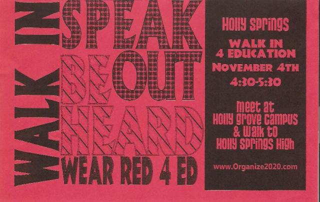 This offshoot self-describes as the NCAE’s “social justice caucus.” Organize 2020 has been behind multiple state-wide ‘teacher walk-in’ protests and related events. Leaflets, like the one below, were sent home in student’s backpacks for parents to discover: