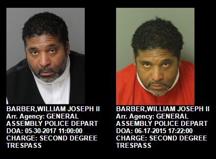 In June, Moral Monday leader and NAACP President, Rev. William Barber, was banned from entering the North Carolina State Legislature building after interfering with business being conducted.