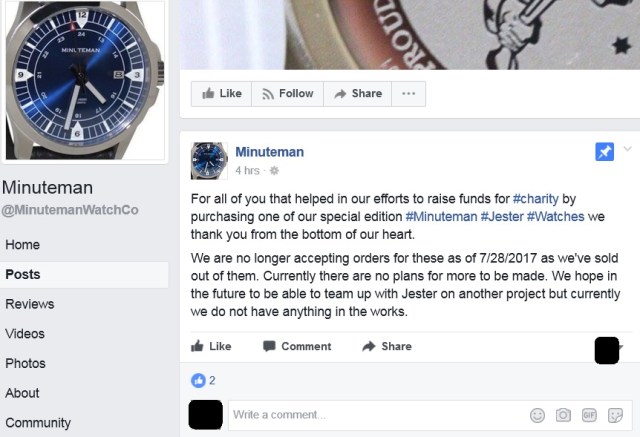 It’s been eighteen months since the JΞSTΞR ✪ ΔCTUAL Special Edition Watch went on sale. I am extremely pleased to announce the following update from the Minuteman Facebook page:
