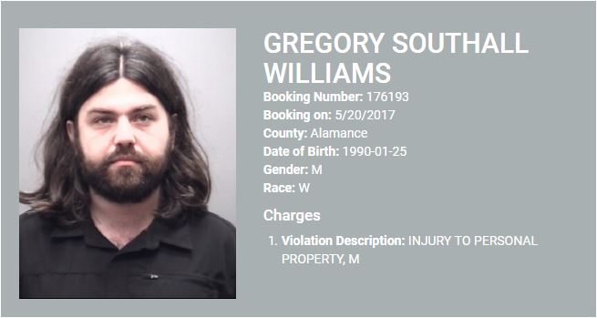 The third person mentioned above, Gregory Williams, has quite an arrest record over the last year. The Durham arrest was his third in 2017.