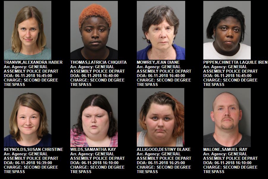 Reminder: These people go to a training meeting prior to the event where they volunteer to be arrested.