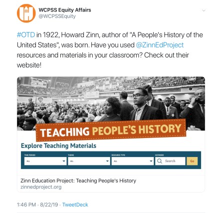 Just prior to school starting, the Office of Equity Affairs openly encouraged teachers to use controversial resources from socialist, anarchist and history revisionist Howard Zinn.