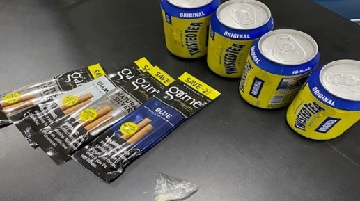 Viki’s belongings were searched and law enforcement found “marijuana, several packages of marijuana cigarette materials, and four cans of Twisted Tea, which is 5 percent alcohol by volume.”